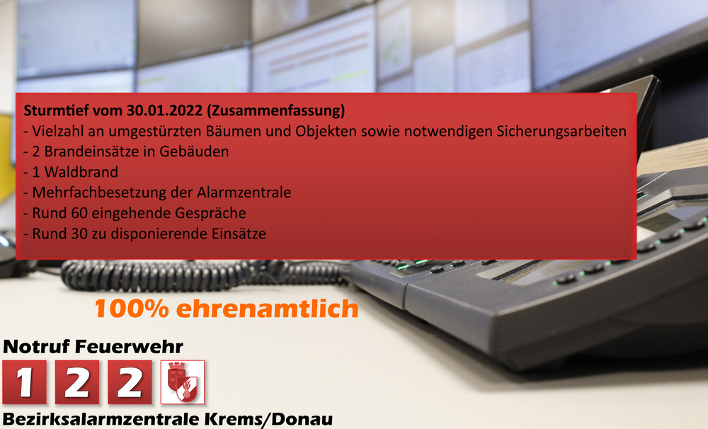 Die Bezirksalarmzentrale war daher mit zwei ehrenamtlichen Disponenten besetzt, welche durch die Kollegen in Amstetten und Mödling im ständigen Alarmzentralenverbund unterstützt wurden. Das Team musste im Laufe des Nachmittages rund 60 eingehende Gespräche abwickeln und rund 30 Einsätze disponieren.