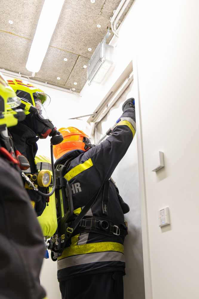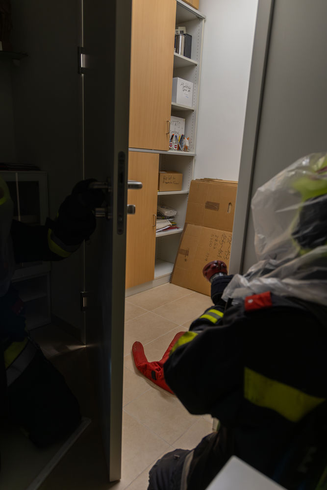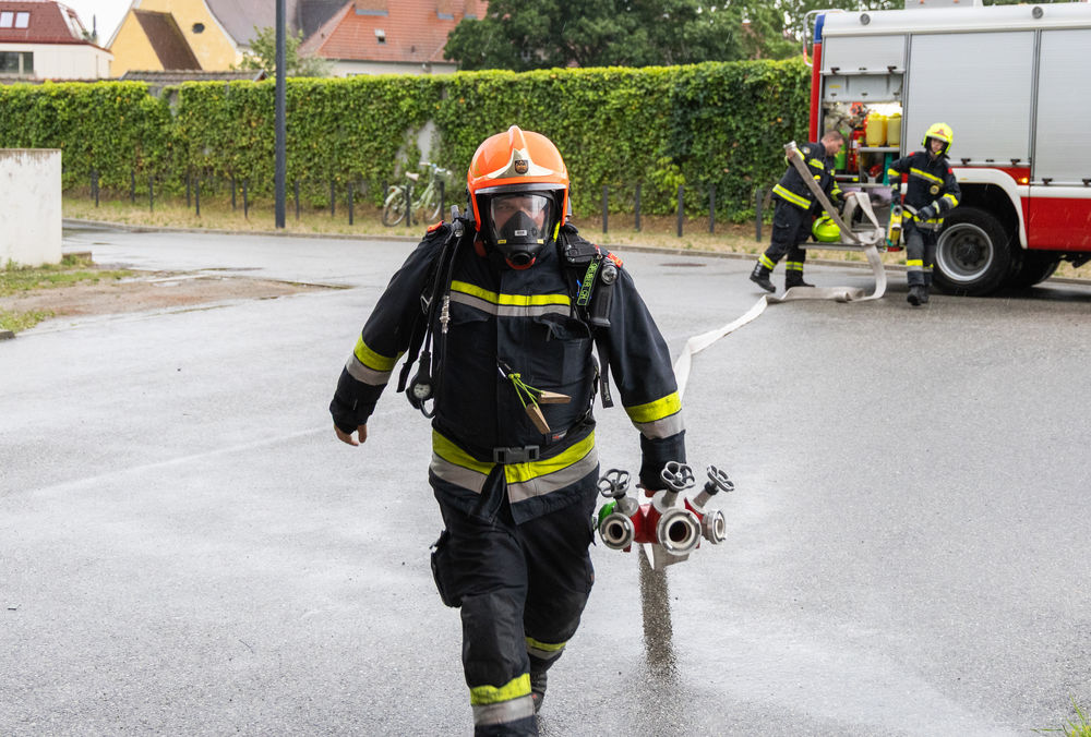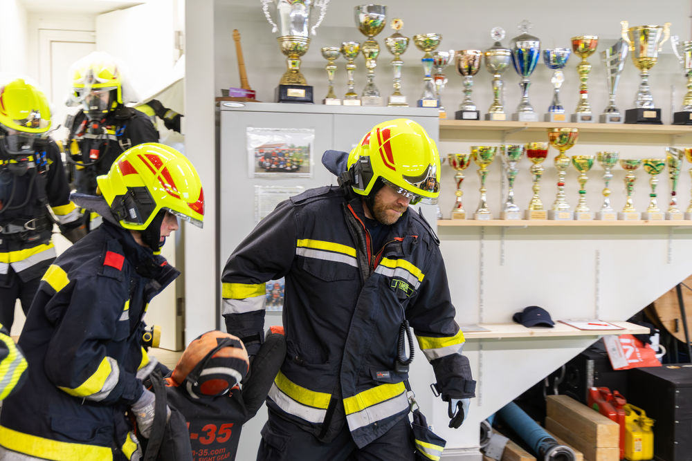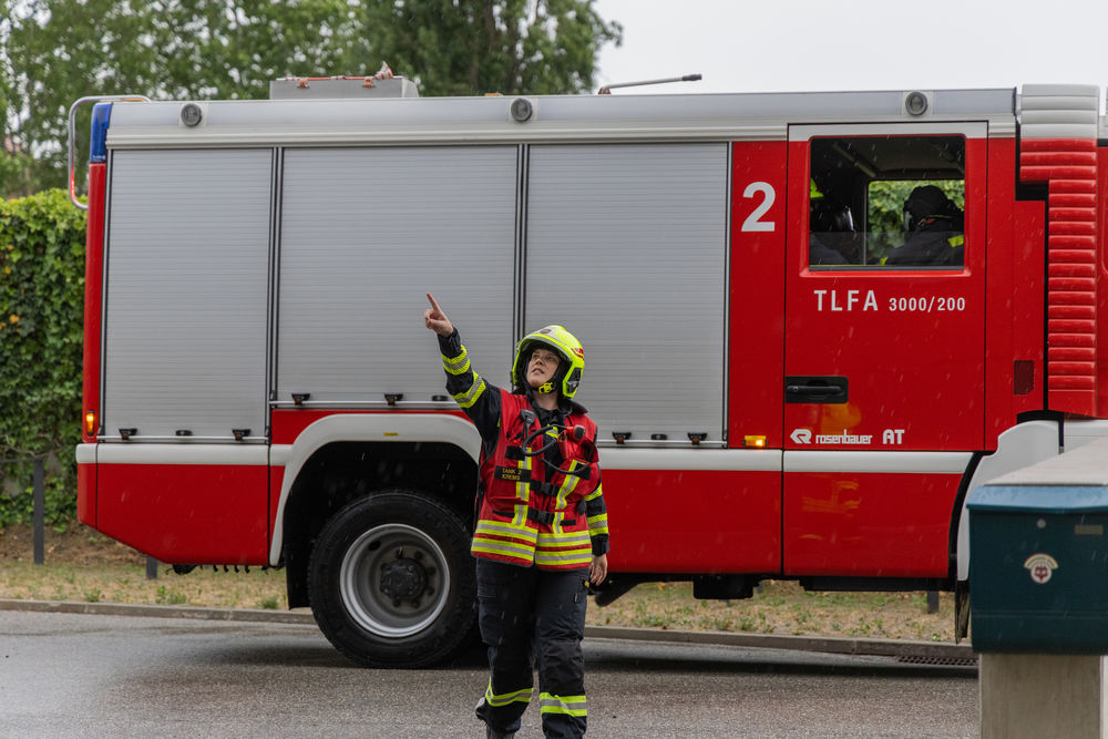 Zu Beginn der Übung führte die erste Fahrzeugkommandantin eine Lageerkundung durch. Währenddessen bereitete der Atemschutztrupp eine Löschleitung vor. Nach dem Befehl ging der erste Trupp zur Menschenrettung vor. Nach dem Durchdringen des Hindernisparcours fanden die Einsatzkräfte rasch das Feuer und löschten es ab. Ebenfalls fanden sie im ersten Raum das vermisste Kind und brachten es in Sicherheit. Gemeinsam mit einem zweiten Atemschutztrupp setzten die sechs Einsatzkräfte die Suche nach den beiden weiteren Vermissten fort. Bereits nach kurzer Zeit fand man eine vermisste Person, die hinausgebracht wurde. Der zweite Atemschutztrupp setzte die Suche fort und fand in einem angrenzenden Büro die letzte Person. Auch diese konnte rasch ins Freie gebracht werden. Die Übung konnte anschließend beendet werden.