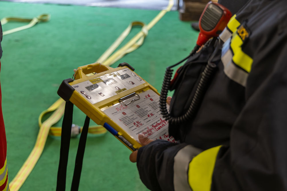 Nach dem Rückbau der Gerätschaften begann die Nachbesprechung, bei der die Fahrzeugkommandantin und die beiden Truppführer über das Erlebte berichteten. Auch der Brandschutzbeauftragte, selbst Mitglied der Hauptwache, konnte viele gestellte Fragen beantworten.