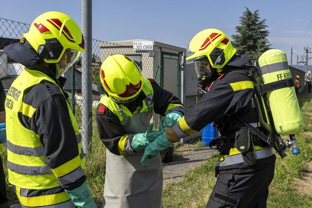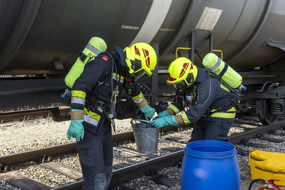 Dort konnte festgestellt werden, dass geringe Menge an Methanol aus dem Ventil raustropfte. Zur Vorsorge wurde zunächst ein Kübel untergestellt, welcher verhinderte, dass die Chemikalie in das Erdreich gelangen konnte. Unter Atemschutz und der Chemikalienschutzstufe 1 Ausrüstung konnte das Leck abgedichtet werden. Anschließend wurde das Methanol in Fässer kontrolliert abgelassen. Daraufhin übergaben die Einsatzkräfte das Fass, welches mit wenigen Liter Chemikalie befüllt war, der ebenfalls nachalarmierten Betriebsfeuerwehr Krems Chem.