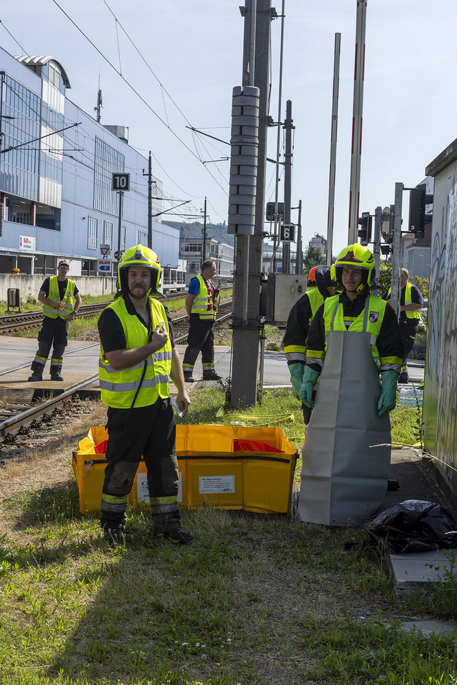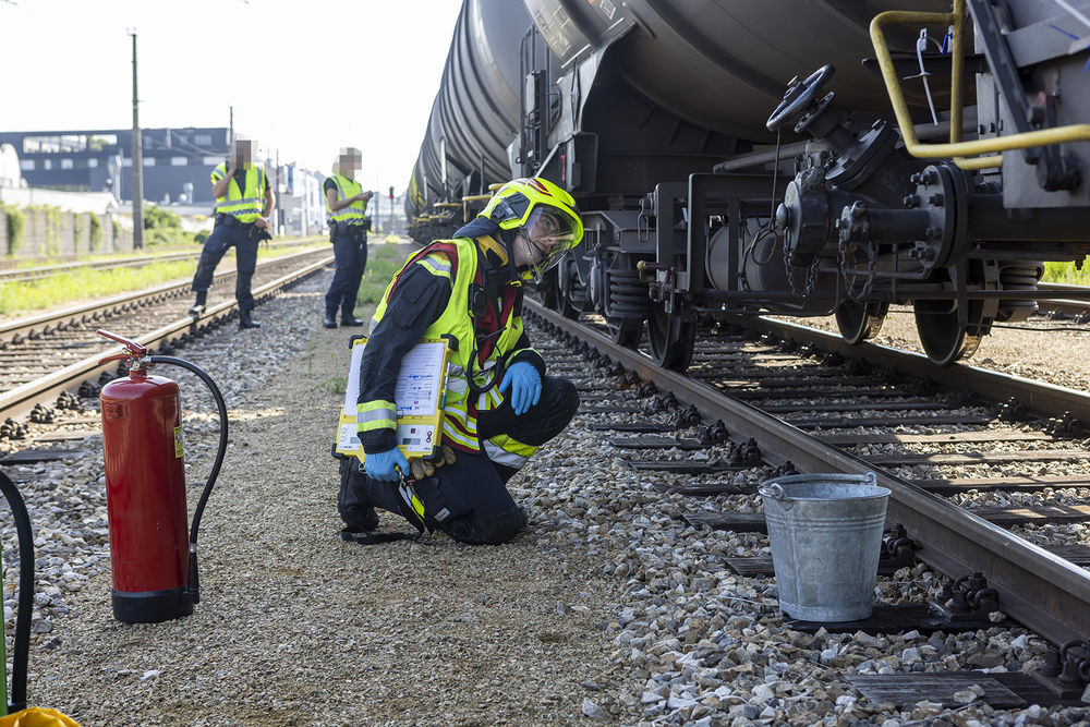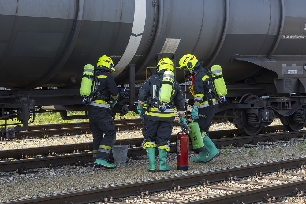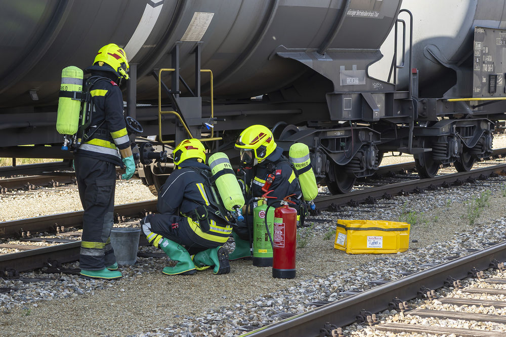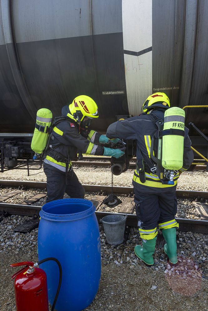 Bereits nach wenigen Minuten nach der Alarmierung rückten mehrere Fahrzeuge aus. Kurze Zeit später folgte auch der Schadstoffcontainer der Feuerwehr Krems. Vor Ort wies der ÖBB Einsatzleiter die Feuerwehrkräfte ein und führte sie nach der Sperre der benachbarten Gleise zum betroffenen Wagon.
