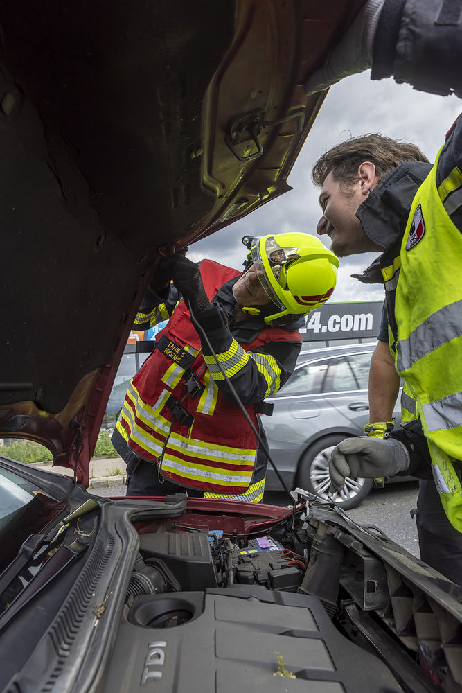 Zu Mittag am 30. Juli wurde die Hauptwache zu einem Verkehrsunfall alarmiert. Ein Auto fuhr stadtauswärts auf das davorfahrende Fahrzeug auf.
