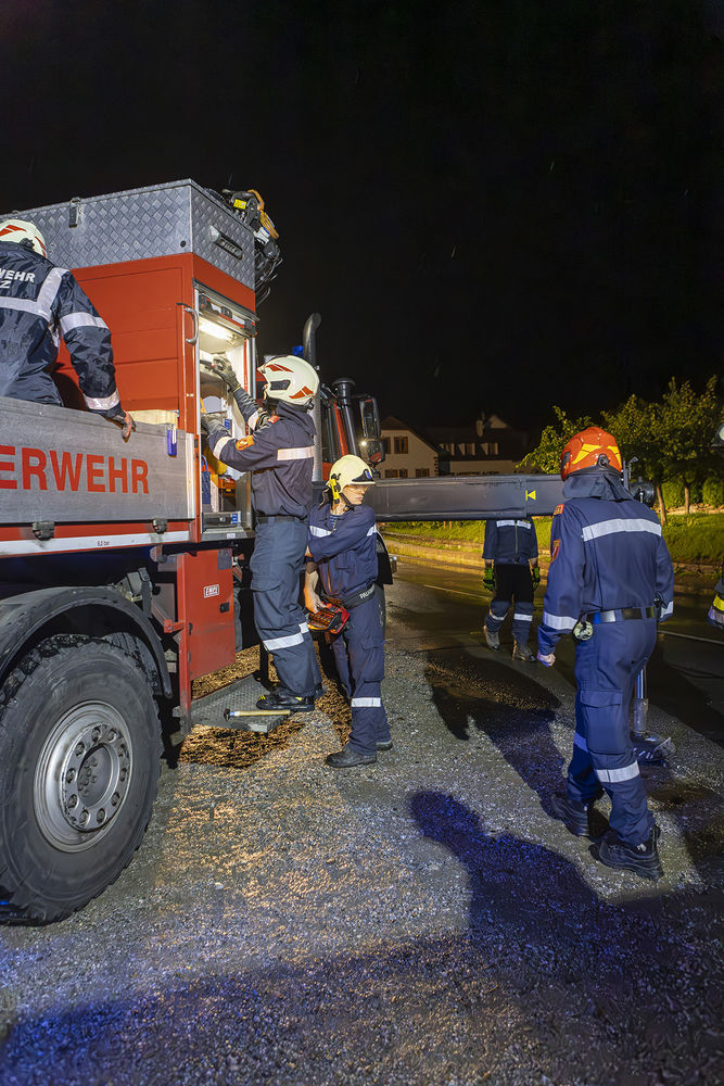Anschließend wurde das Fahrzeug gesichert abgestellt, bis es von einem privaten Abschleppdienst von der Unfallstelle entfernt werden konnte. Während des Einsatzes wurde der Verkehr wechselweise an der Unfallstelle vorbei geleitet. Der Einsatz der Feuerwehren dauerte rund 90 Minuten.