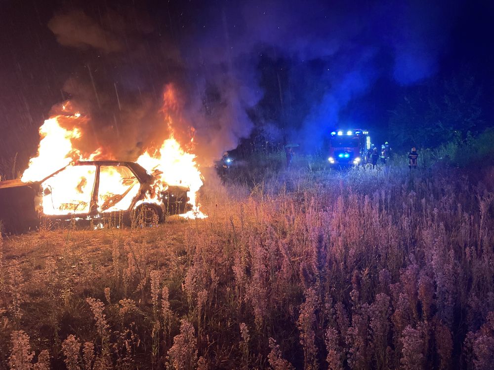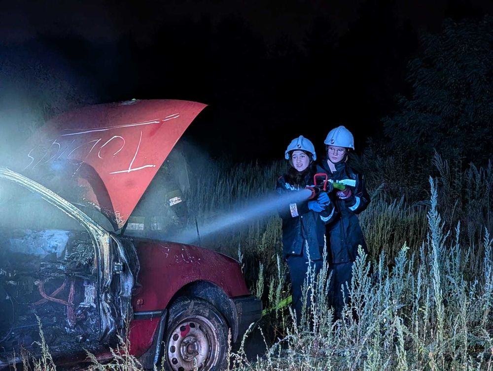 Nur kurze Zeit später, das Abendessen war gerade erst verschlungen, folgte die Alarmierung zu einem Fahrzeugbrand. Mit der nötigen Coolness wurden rasch zwei Löschleitungen verlegt und die Flammen niedergeschlagen.