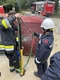 Während das Nachtlager vorbereitet wurde, schrillte erstmals der Alarmgong durch die Feuerwache - Menschenrettung nach Verkehrsunfall. Rasch zogen sich alle Jugendmitglieder um und rückten zum Einsatz aus. Vor Ort wurden den wissbegierigen Youngsters die Grundlagen der Menschenrettung näher gebracht. Selbstverständlich durfte hierbei auch jeder selbst Hand anlegen.