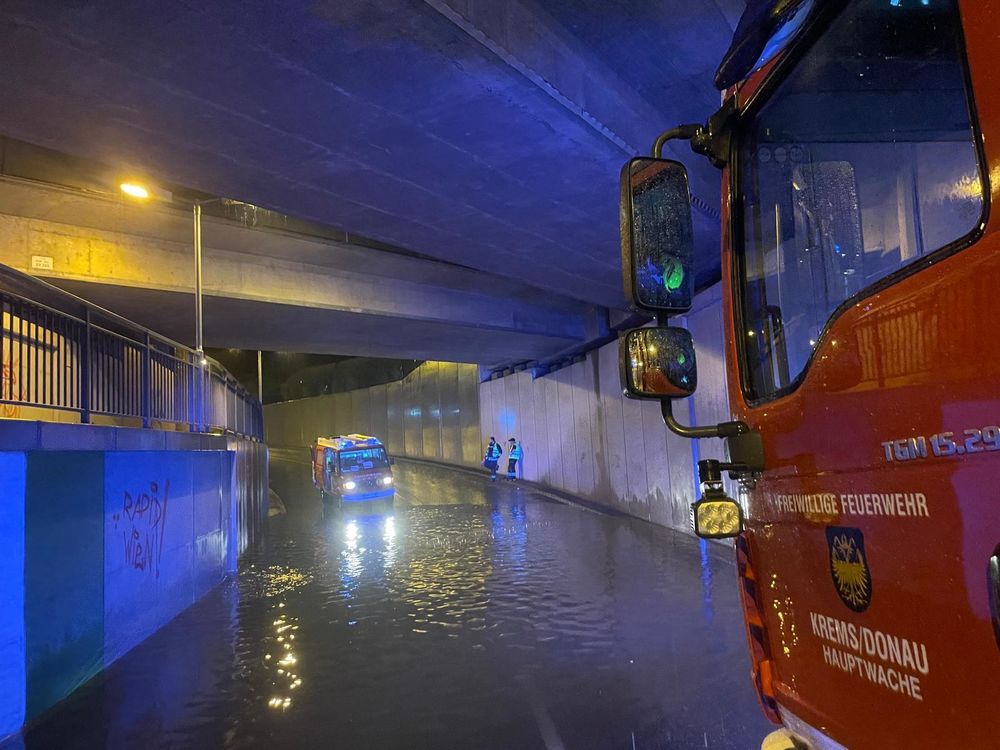 Eine überflutete Unterführung führte am Mittwochabend zu einem Feuerwehreinsatz zur Unterstützung der örtlichen Straßenmeisterei. Da zunächst unklar war, wie viel Wasser in der Unterführung stand, rückte die Hausmannschaft mit dem Hilfeleistungsfahrzeug und dem Kleinlöschfahrzeug aus.