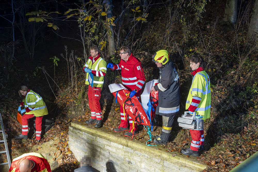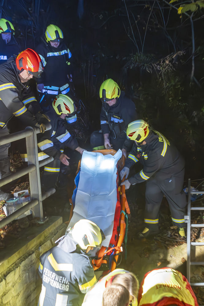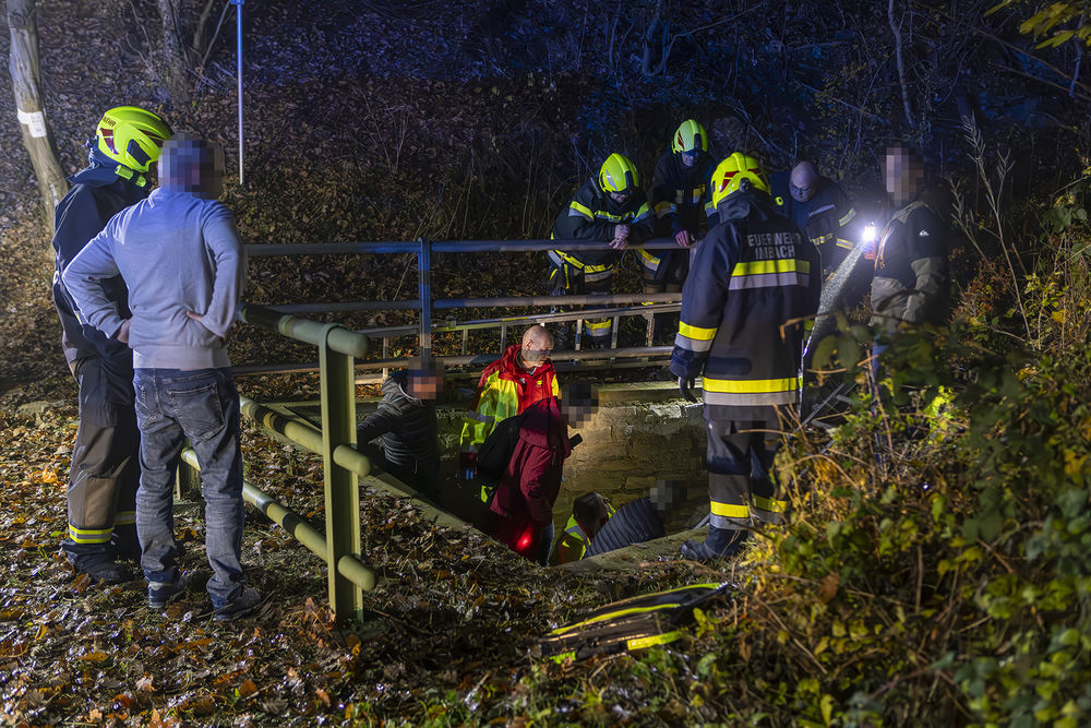 Aufgrund der Meldung, dass der Verletzte in größere Tiefe gestürzt sei, wurden neben den Feuerwehren Senftenberg, Imbach und Stratzing auch die Feuerwehr Gföhl mit ihrer Drehleiter alarmiert.