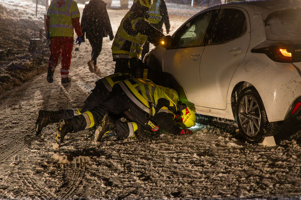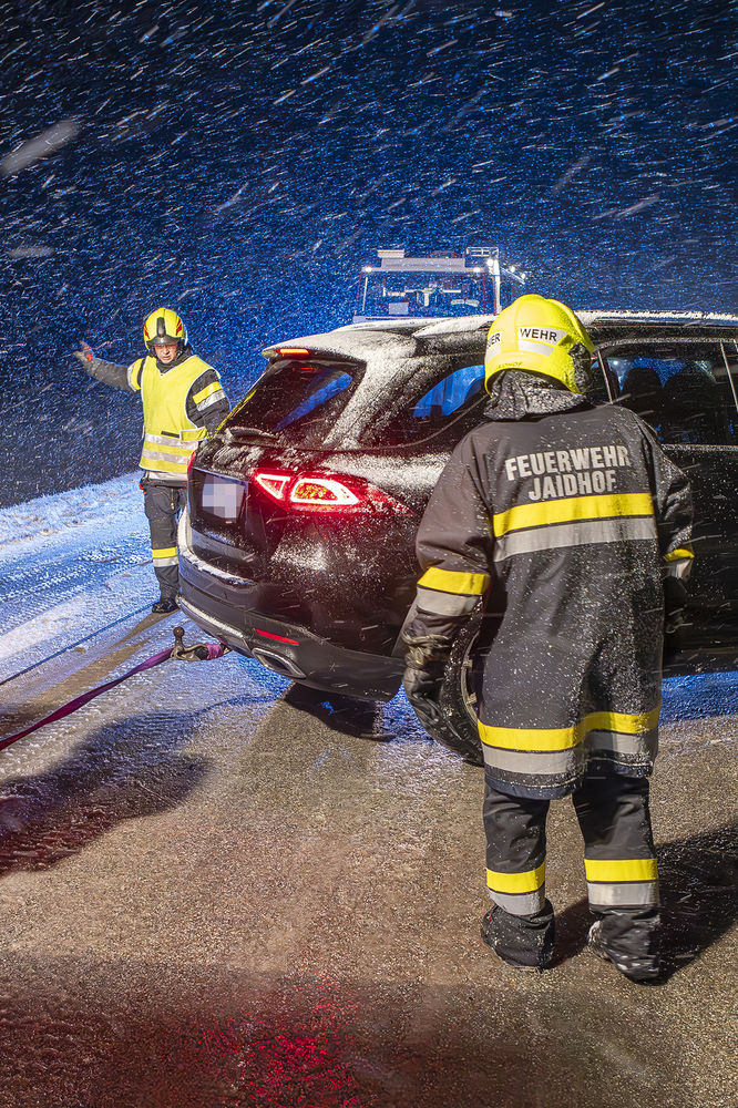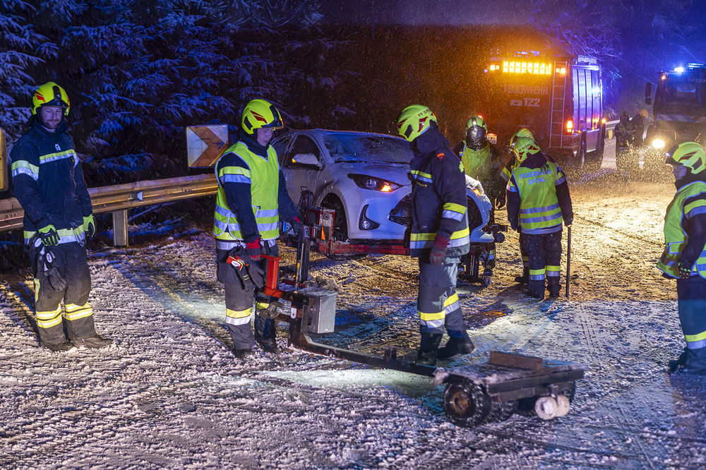 Neben den drei Feuerwehren fuhren auch zwei Rettungswagen, der Notarzt aus Zwettl, sowie die örtlich zuständige Polizei zum Einsatz. Beim Eintreffen der Einsatzkräfte konnte jedoch Entwarnung gegeben werden: Die Personen blieben nur aufgrund des Schneefalls in ihren Fahrzeugen sitzen und wurden nicht eingeklemmt oder eingeschlossen. Nachdem die Unfallaufnahme der Polizei abgeschlossen war, konnte mit der Bergung begonnen werden.