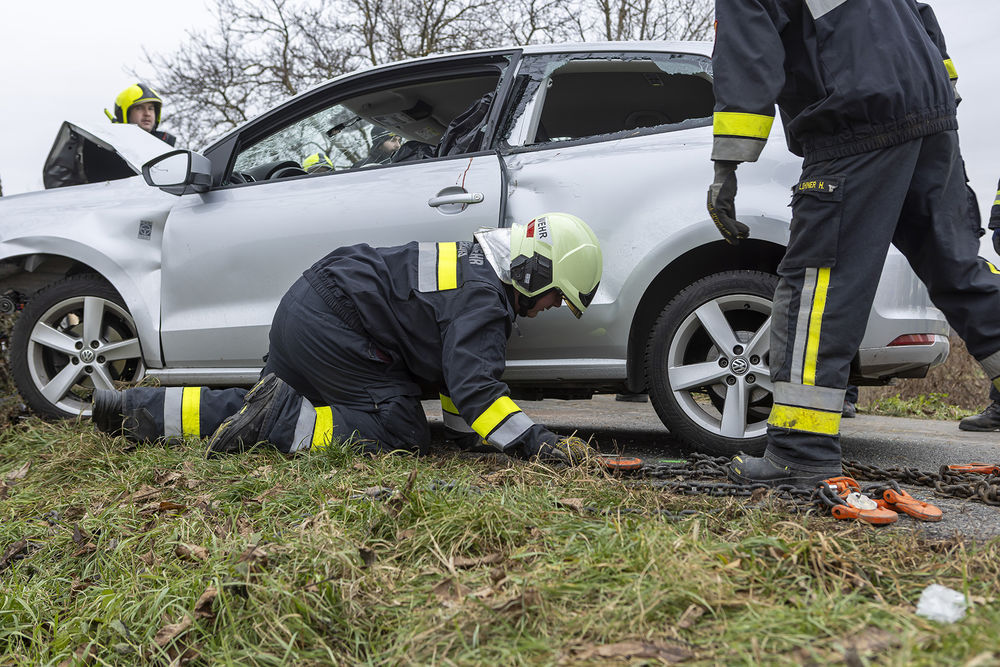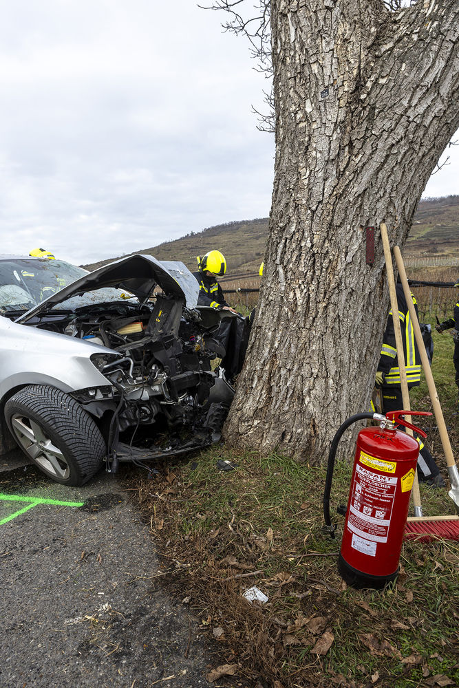 Kurz vor 12 Uhr kam es am Samstag den 29. November 2025 auf der Landesstraße zwischen Kammern und Zöbing zu einem schweren Verkehrsunfall. Ein Fahrzeug kam von der Straße ab und prallte gegen einen Baum. Ein Ersthelfer zögerte nicht, rief den Feuerwehrnotruf und fuhr umgehend zum Feuerwehrhaus in Kammern, um den Einsatzkräften den Unfall zu melden.