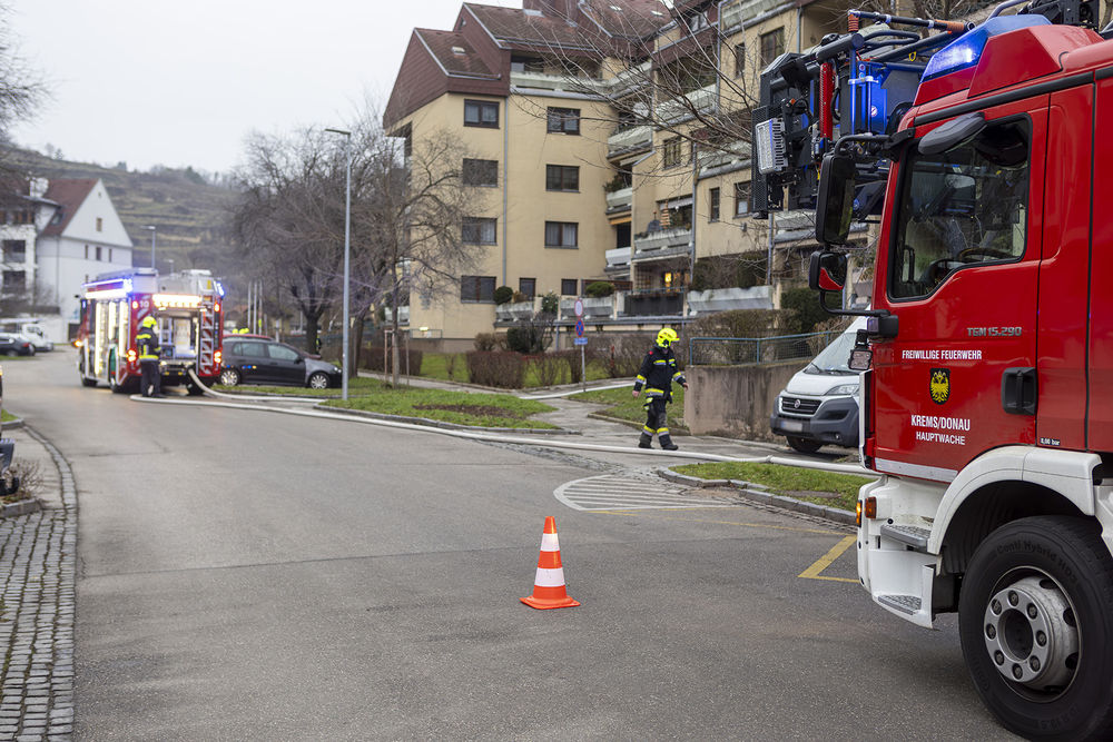 Beim Eintreffen der Feuerwehr wies der Anrufer die Einsatzkräfte ein. Laut ihm kam es zu einer Verrauchung in seinem Schlafzimmer. Unverzüglich bereiteten die Mitglieder erste Löschleitungen nach dem Kremser Standardvorgehen vor. Nach der ersten Erkundung konnte jedoch Entwarnung gegeben werden, da die Rauchentwicklung im Zimmer nicht mehr vorhanden war.
