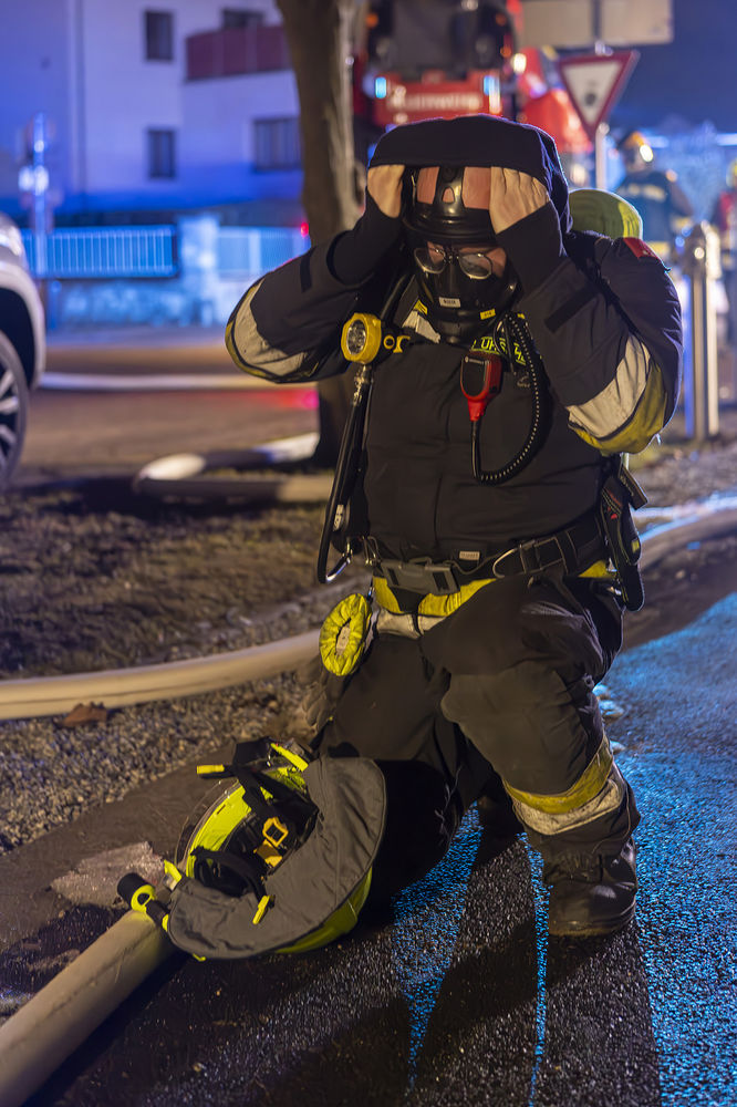 Beim Eintreffen der Feuerwehr war bereits eine deutliche Rauchentwicklung wahrnehmbar. Während der Einsatzleiter die Erkundung durchführte, errichteten die Einsatzkräfte die erste Löschleitung. Umgehend konnte der erste Atemschutztrupp in das Gebäudeinnere vorgehen. Zunächst war lediglich eine starke Rauchentwicklung feststellbar. Nach weiterer Erkundung wurde der Brandherd im Bereich eines eingeheizten Kachelofens lokalisiert. Nachdem der Brandherd gefunden worden war, konnte dieser rasch abgelöscht werden.