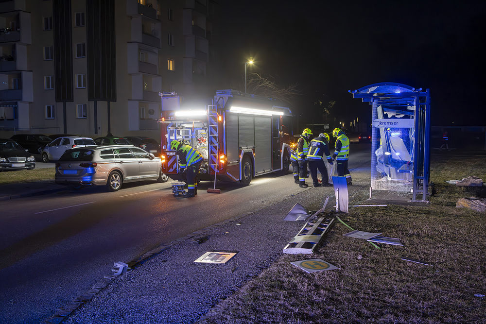 Zu einem Verkehrsunfall kam es am Donnerstagabend gegen 18 Uhr in Lerchenfeld. Zwei PKW kollidierten an einer Kreuzung, worauf einer aus bislang ungeklärter Ursache eine Bushaltestelle in der Admonterstraße rammte. Anzeiger verständigten unverzüglich die Einsatzkräfte, woraufhin der Diensthabende der Bereichsalarmzentrale Krems die Hausmannschaft der Hauptwache alarmierte.
