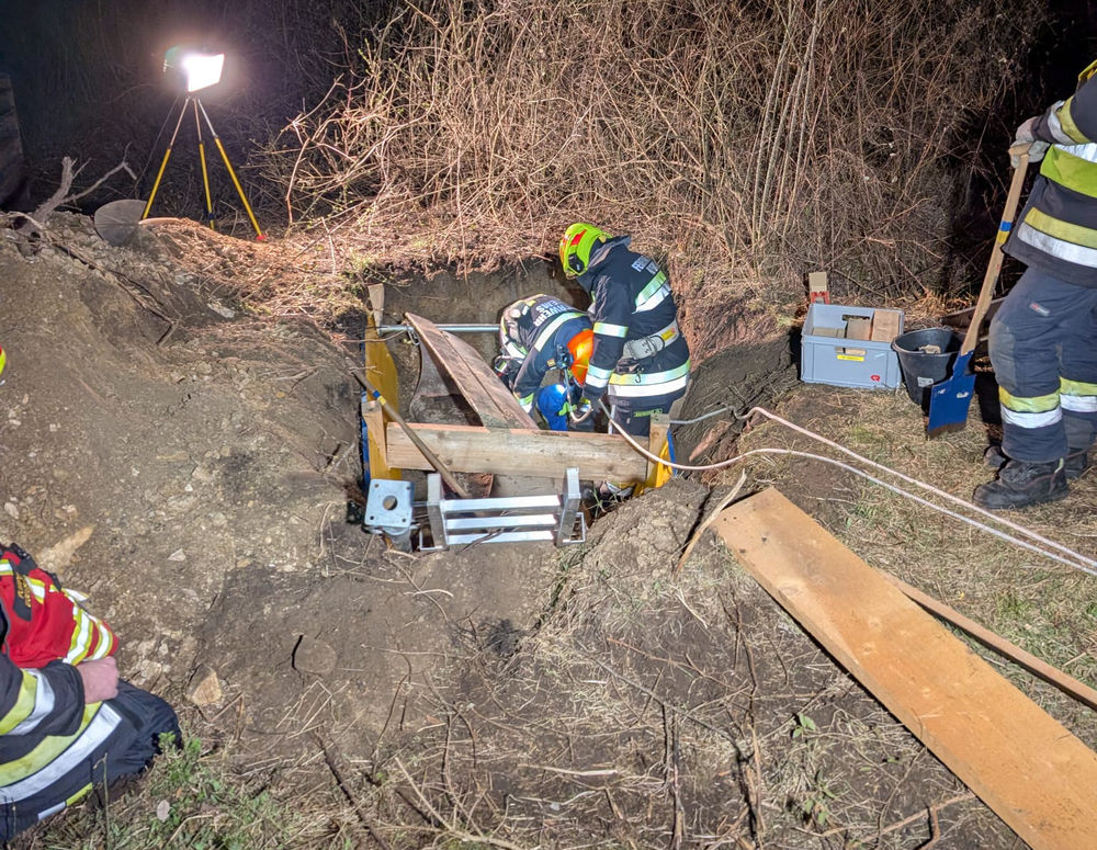 "Bauarbeiter verschüttet und unter Baggerschaufel eingeklemmt." Das war am Freitag, 27.03.2026, die Ausgangslage für eine technische Übung der Feuerwache Egelsee. Das unwegsame Gelände und die Dunkelheit erschwerten die Rahmenbedingungen, unter denen die Einsatzkräfte arbeiten mussten, zusätzlich.