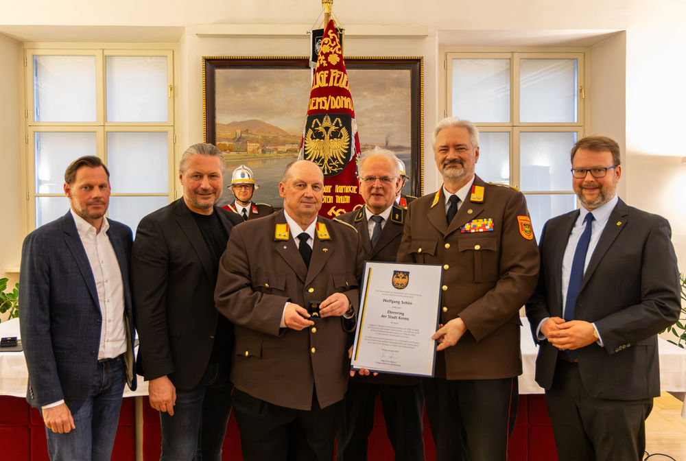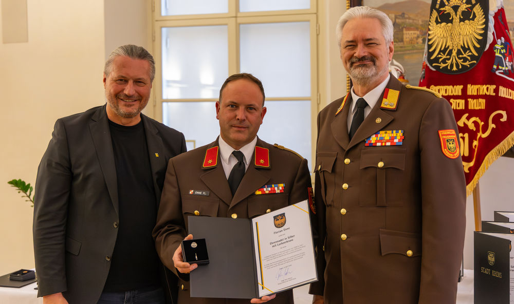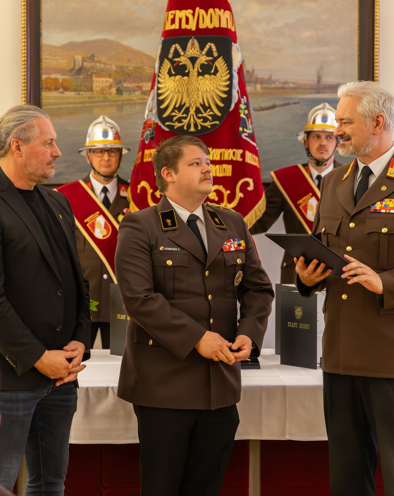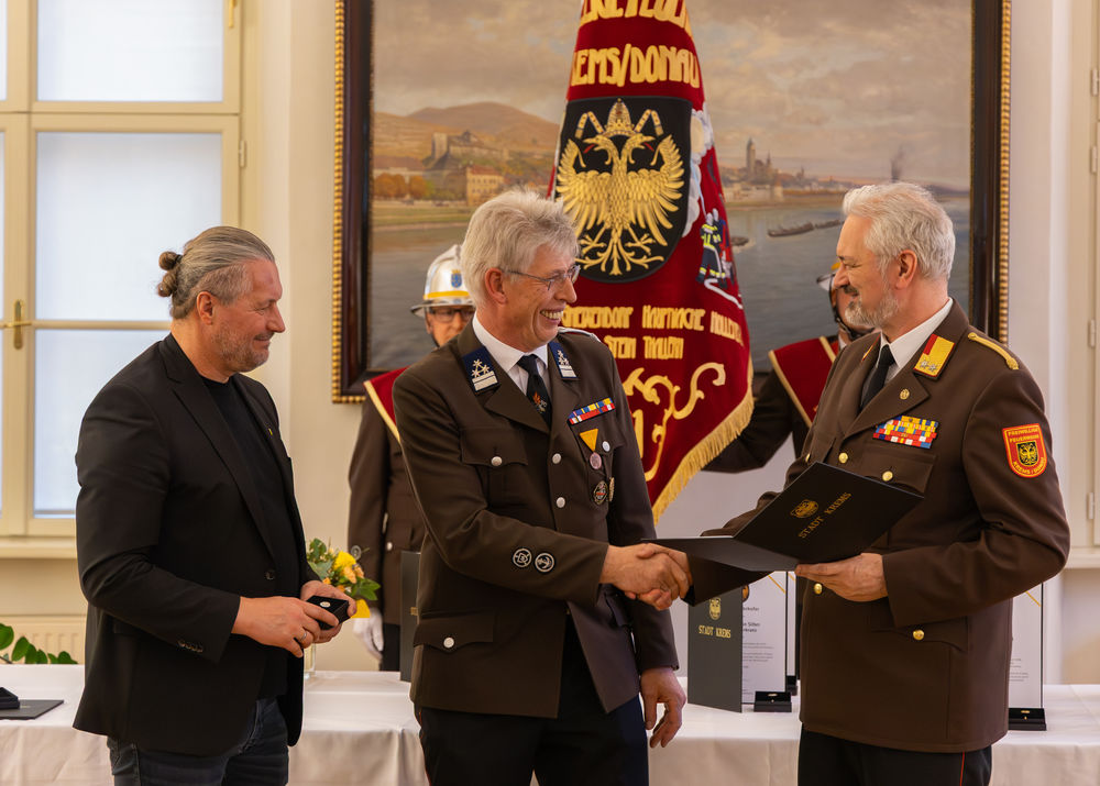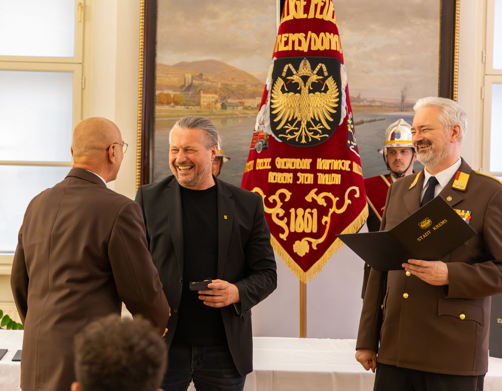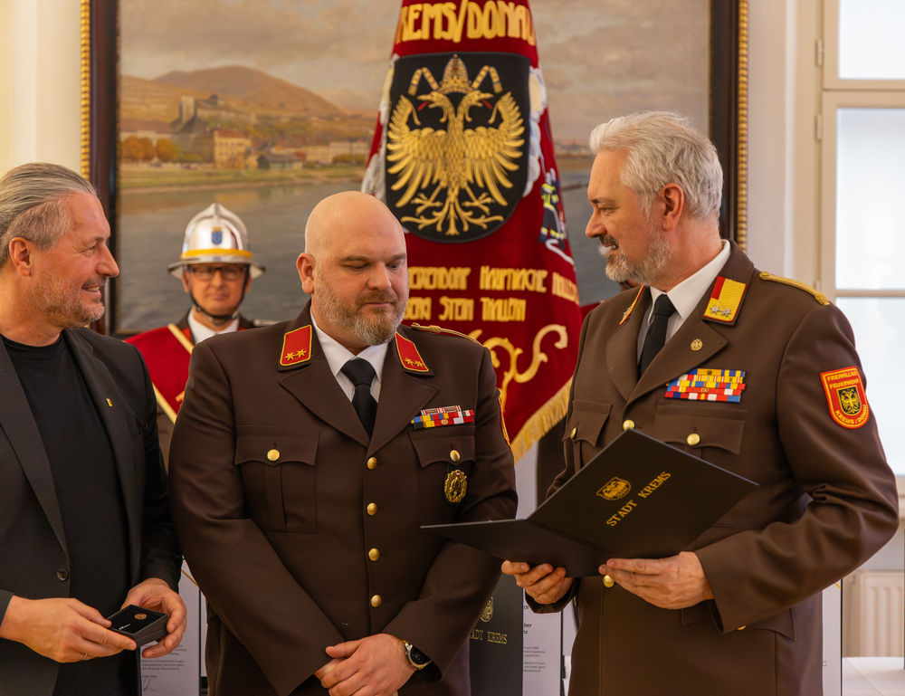 Die Stadt Krems hat am Mittwoch, 15.04.2026, verdiente Mitglieder der Freiwilligen Feuerwehr ausgezeichnet. "Gründe, die Feuerwehr zu loben und zu ehren, gibt es viele", sagte Bürgermeister Peter Molnar. Eine besondere Auszeichnung erhielt der langjährige Kommandant der Freiwilligen Feuerwehr Krems, Wolfgang Schön. Ihm wurde der Ehrenring der Stadt Krems verliehen - die zweithöchste Auszeichnung nach der Verleihung der Ehrenbürgerschaft.