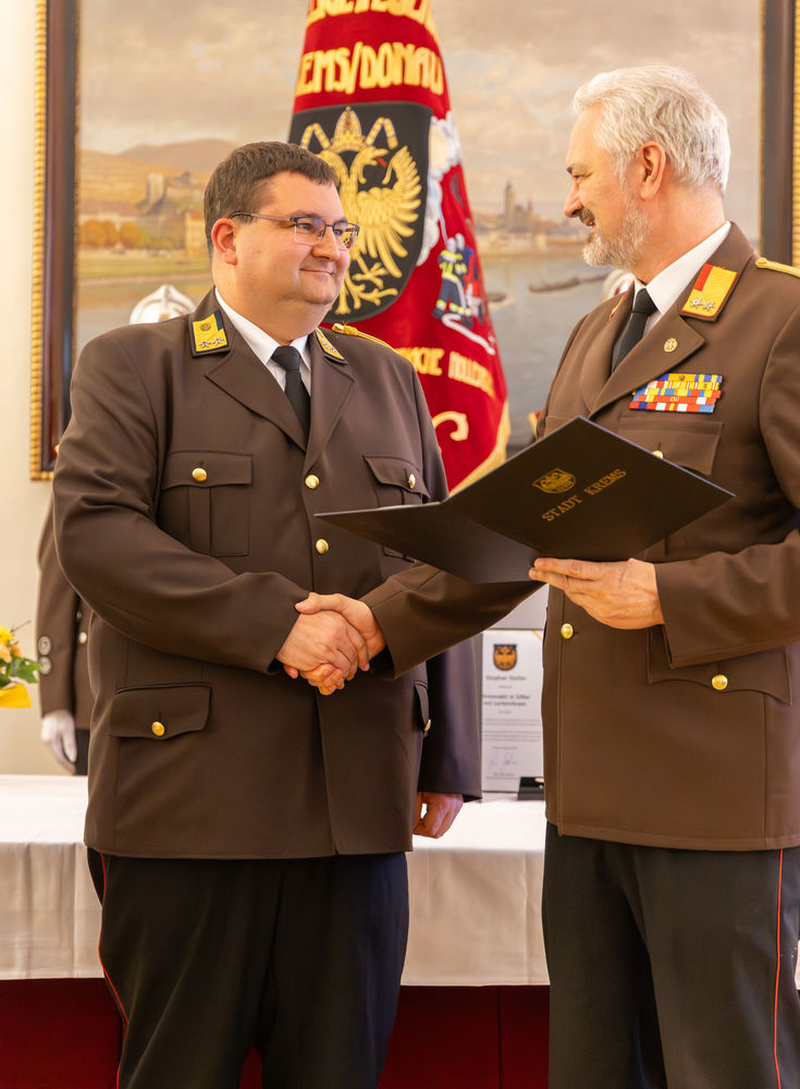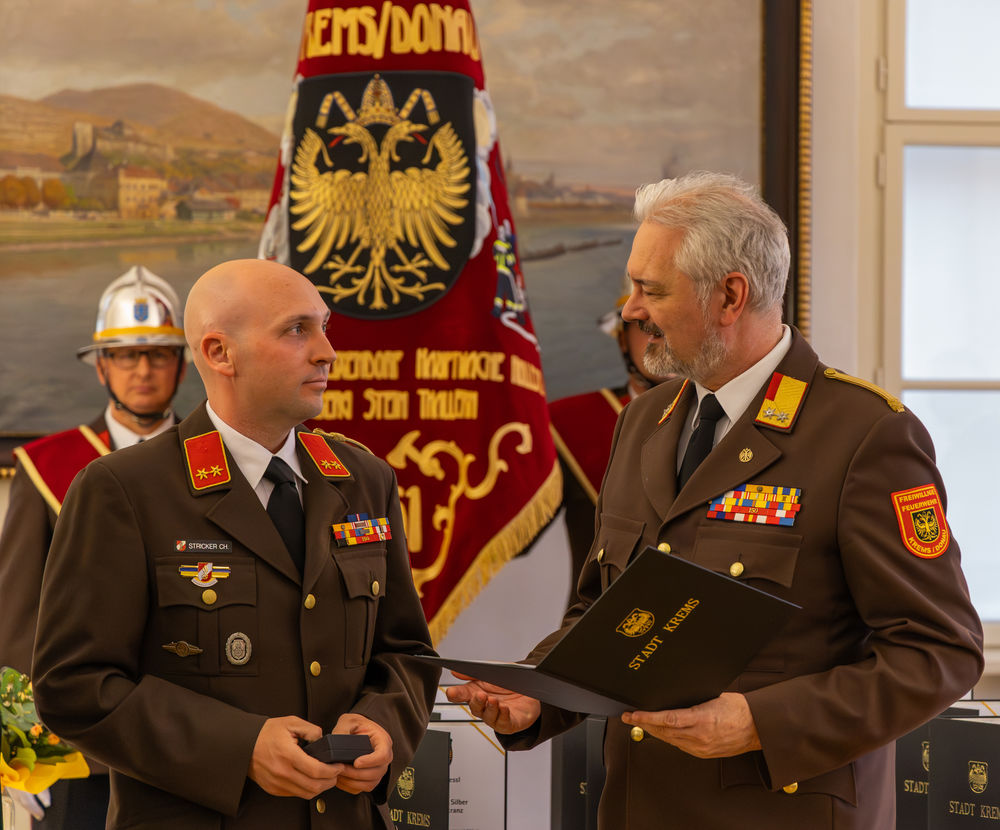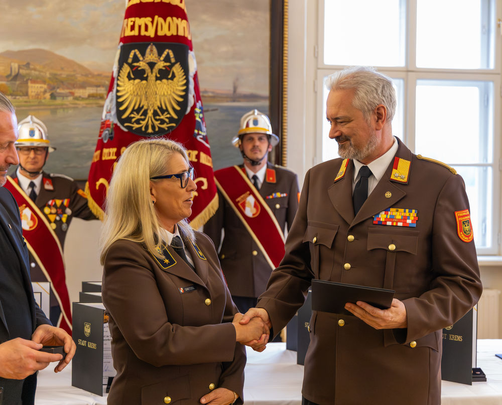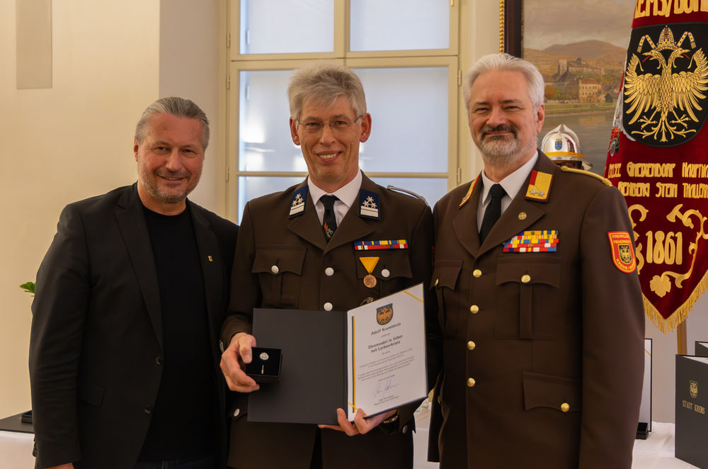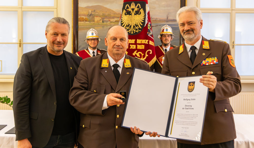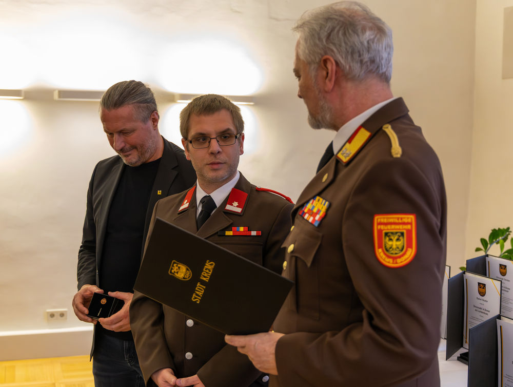 Die Stadt Krems hat am Mittwoch, 15.04.2026, verdiente Mitglieder der Freiwilligen Feuerwehr ausgezeichnet. "Gründe, die Feuerwehr zu loben und zu ehren, gibt es viele", sagte Bürgermeister Peter Molnar. Eine besondere Auszeichnung erhielt der langjährige Kommandant der Freiwilligen Feuerwehr Krems, Wolfgang Schön. Ihm wurde der Ehrenring der Stadt Krems verliehen - die zweithöchste Auszeichnung nach der Verleihung der Ehrenbürgerschaft.
