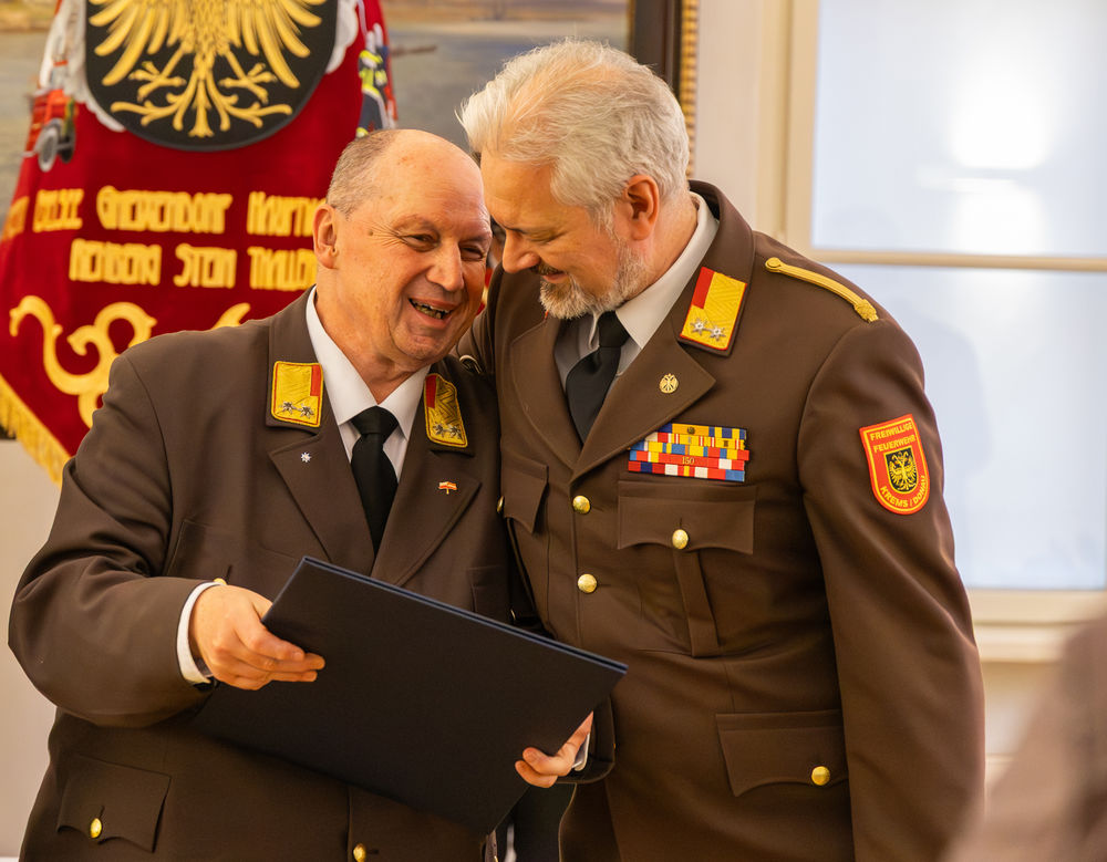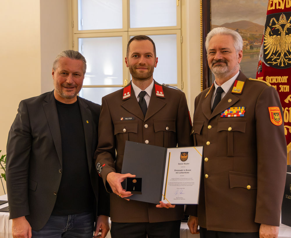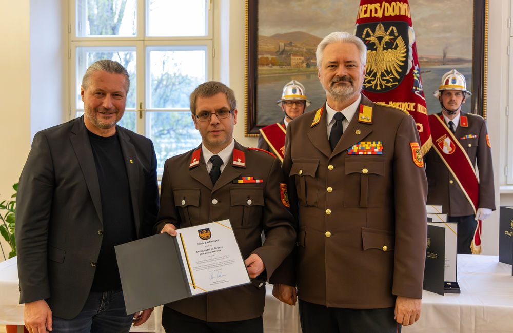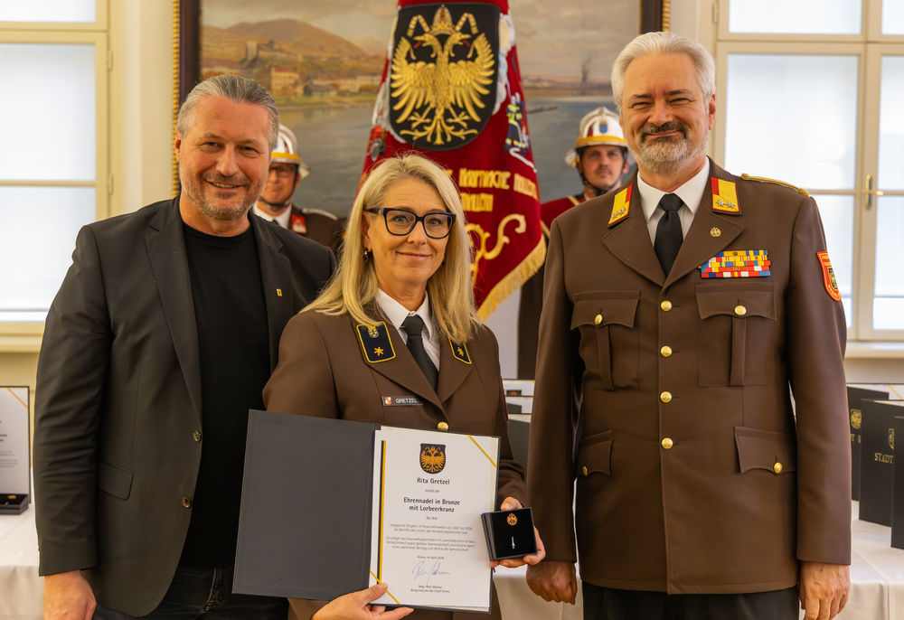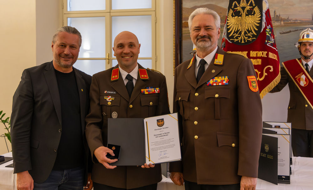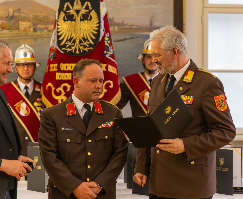 Die Stadt Krems hat am Mittwoch, 15.04.2026, verdiente Mitglieder der Freiwilligen Feuerwehr ausgezeichnet. "Gründe, die Feuerwehr zu loben und zu ehren, gibt es viele", sagte Bürgermeister Peter Molnar. Eine besondere Auszeichnung erhielt der langjährige Kommandant der Freiwilligen Feuerwehr Krems, Wolfgang Schön. Ihm wurde der Ehrenring der Stadt Krems verliehen - die zweithöchste Auszeichnung nach der Verleihung der Ehrenbürgerschaft.